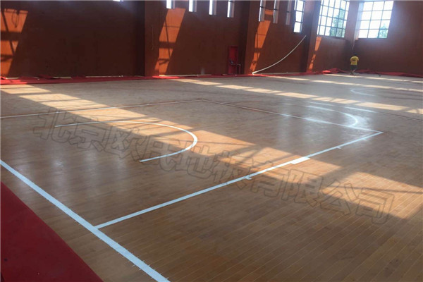 北京歐氏地板有限近期承接上海市金山區(qū)張堰小學綜合樓運動木地板鋪設工程,該小學負責人選擇的是雙層龍骨結構楓木A級實木運動地板,采用45度斜鋪法進行鋪設,鋪設面積680平米,因顧客要求對楓木A級運動木地板進行上色,故顏色較深,現(xiàn)該小學綜合樓實木運動地板已鋪設完成結束驗收.